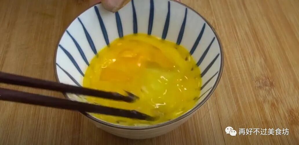 8、另外准备一个小碗,打入两个鸡蛋,充分地将鸡蛋液搅散开。