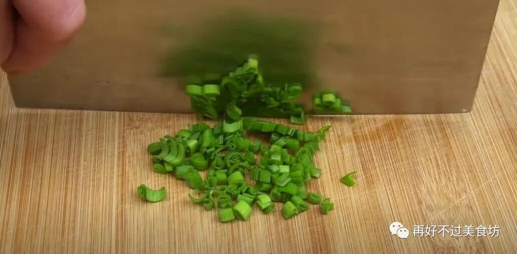 7、准备一把蒜苗,洗净切碎装入碗里。