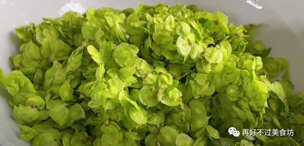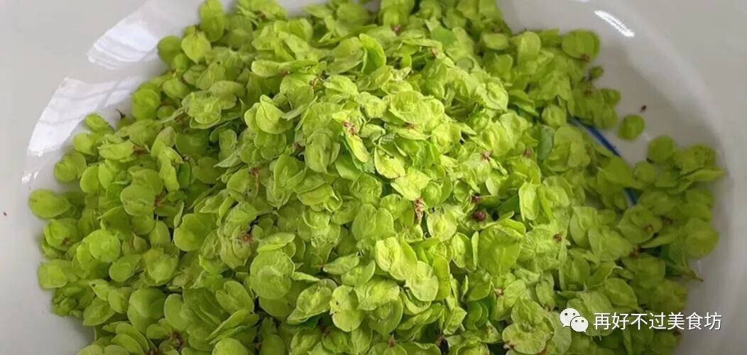 10、如果榆钱太散,就吃不出这个劲道味了,只有全部聚到一块,才能吃出它的香味。
