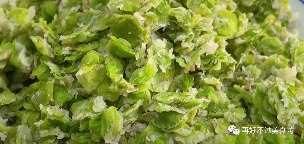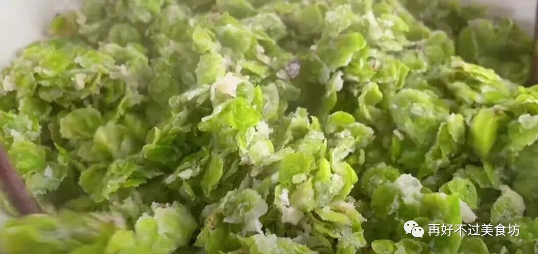 9、再用筷子把它抖散开,让好几榆钱都粘在一起,这样蒸出来的榆钱,宁愿不吃肉,也要吃榆钱,比油条还好吃,主要是口感会比较劲道。