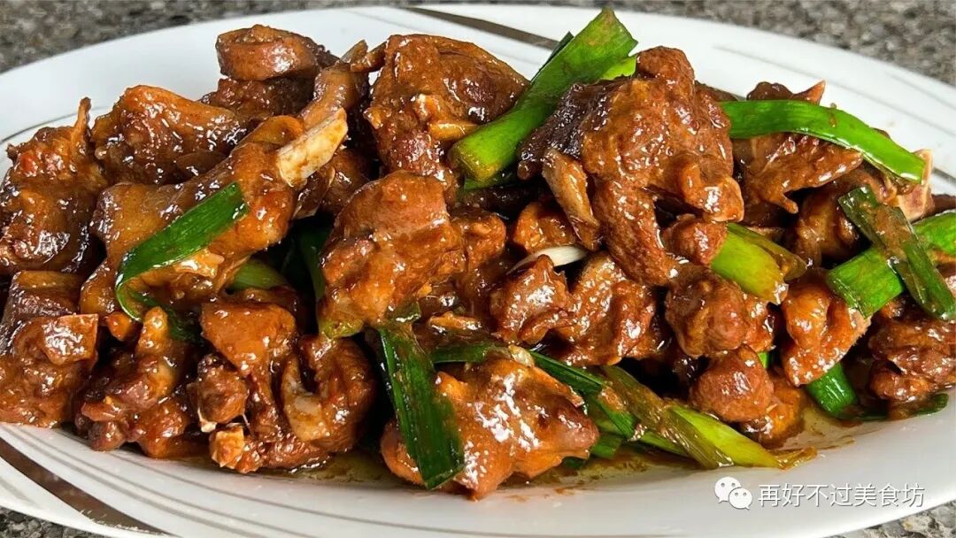8、把蒜苗炒到断生,就可以关火装盘了,这样炖出来的鹅肉,酱香浓郁,软嫩入味,特别的好吃,喜欢的可以尝试一下。