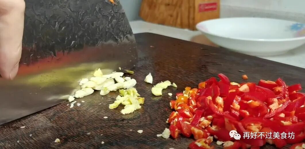 4、准备几个红线椒,从中间片开,然后将它切碎,小米辣切成辣椒圈,生姜拍扁后切碎,大蒜切成碎末,全部切好后,将它们放入盘中备用。
