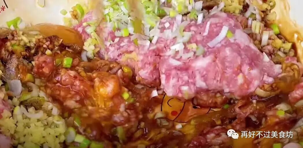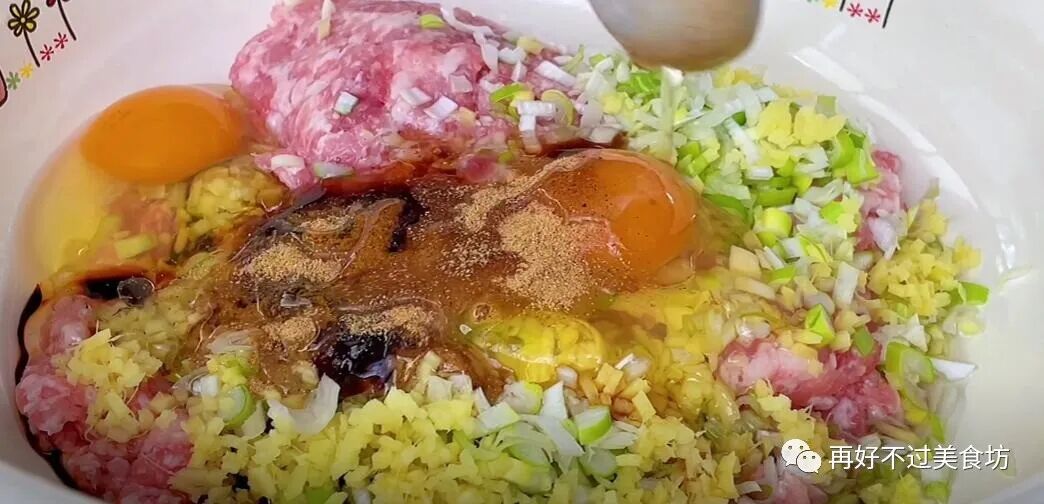 11、再以一斤馅,六克盐的比例,加入食盐,顺着一个方向把盐搅拌均匀,搅拌均匀后就可以直接包饺子。