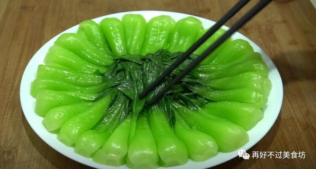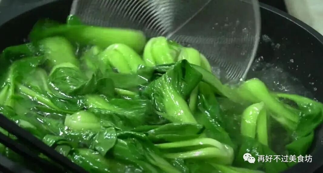 7、然后用漏勺全部捞出来控干水分,再把油菜,一片一片的摆在盘子里,多花个一分钟的时间来摆盘,可以明显提高这道菜的颜值,让人看起来就更有食欲。