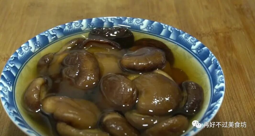 3、将香菇提前泡发好,然后把浸泡香菇的水过滤出来,不要倒掉,待会还要用到。