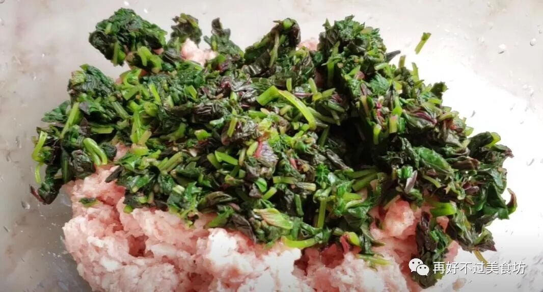 主要食材:红苋菜、猪肉馅、香菇、姜末、葱花、食用碱