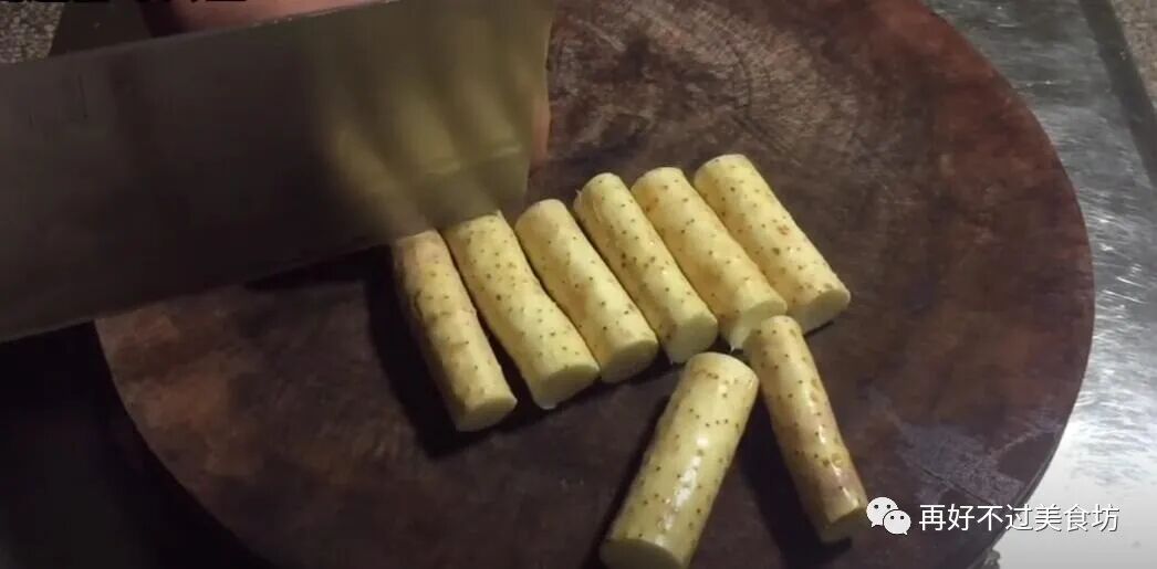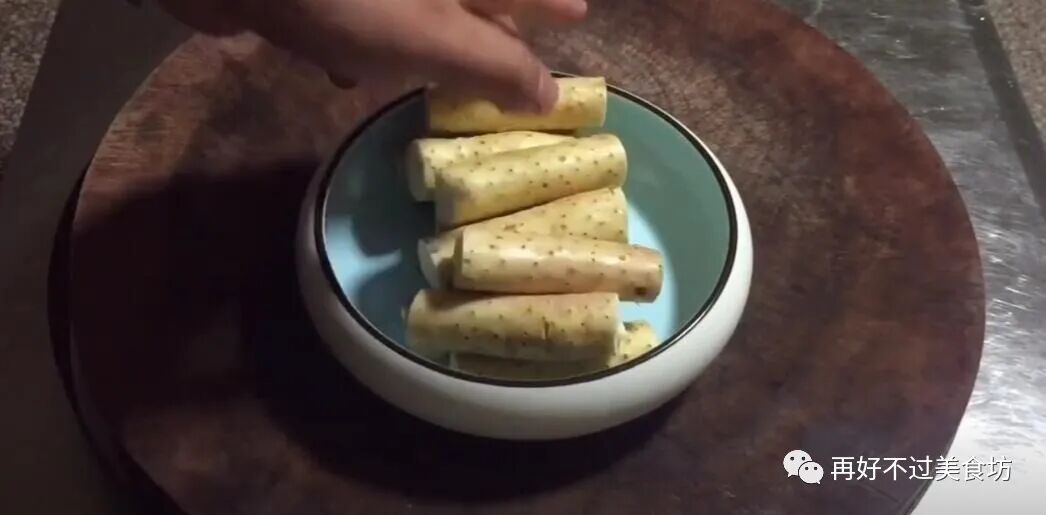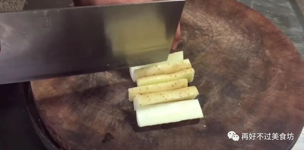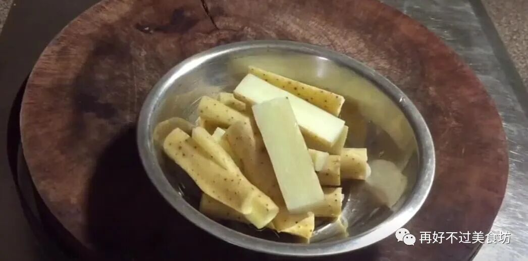1、准备2根洗干净的铁棍山药,切成5公分长,把切成段的铁棍山药,先放入碗中备用。