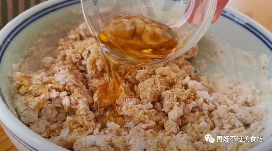 2、再加30克食用油,加食用油的好处,是做出来的饼凉了也不会硬,然后揉成一个稍微偏软一点的面团。