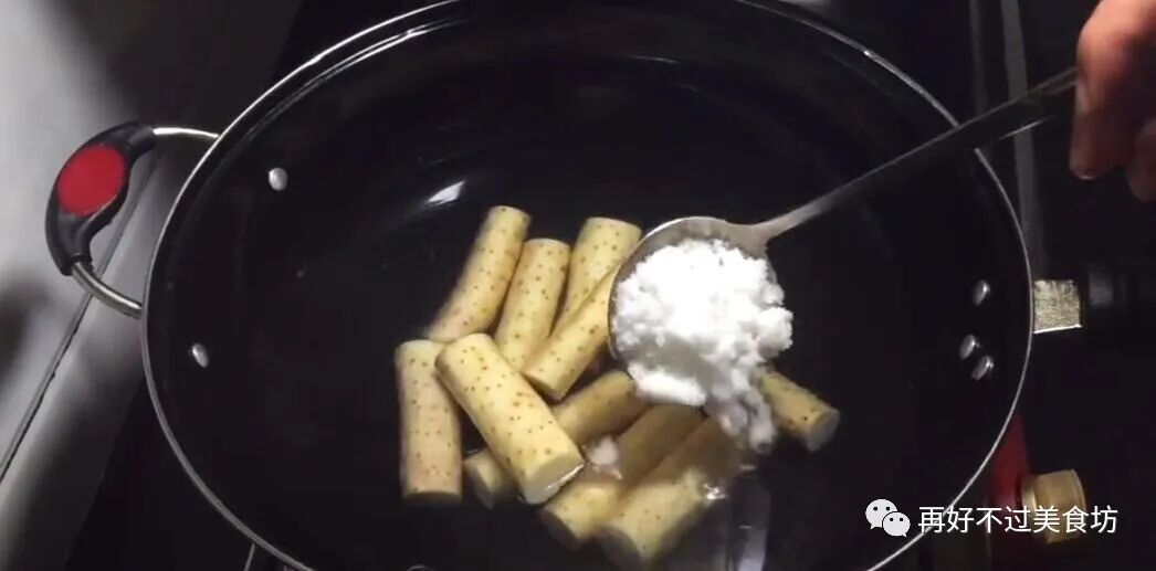 2、准备一锅热水,将铁棍山药倒进去煮,过程中放入30克白糖,放白糖煮出来的铁棍山药,吃起来不仅甘甜,还不容易破皮。