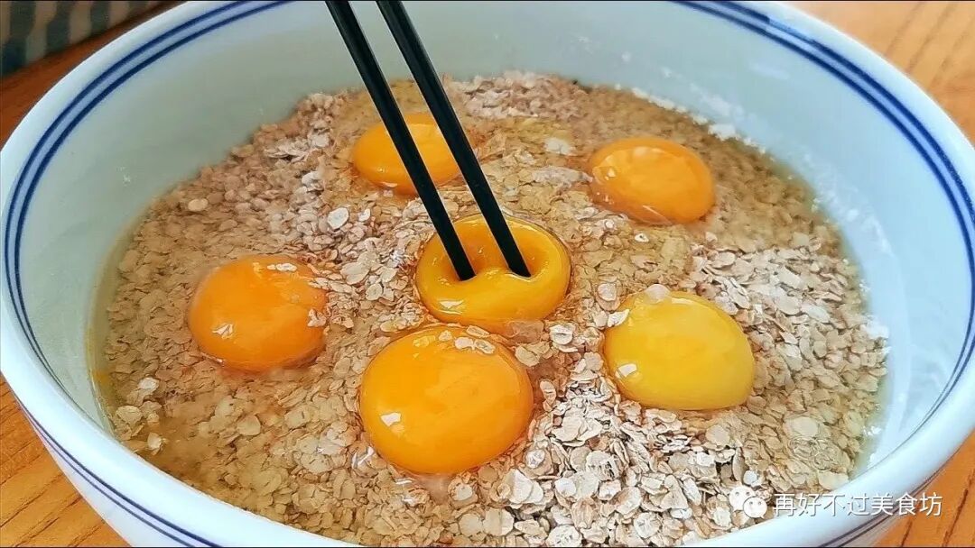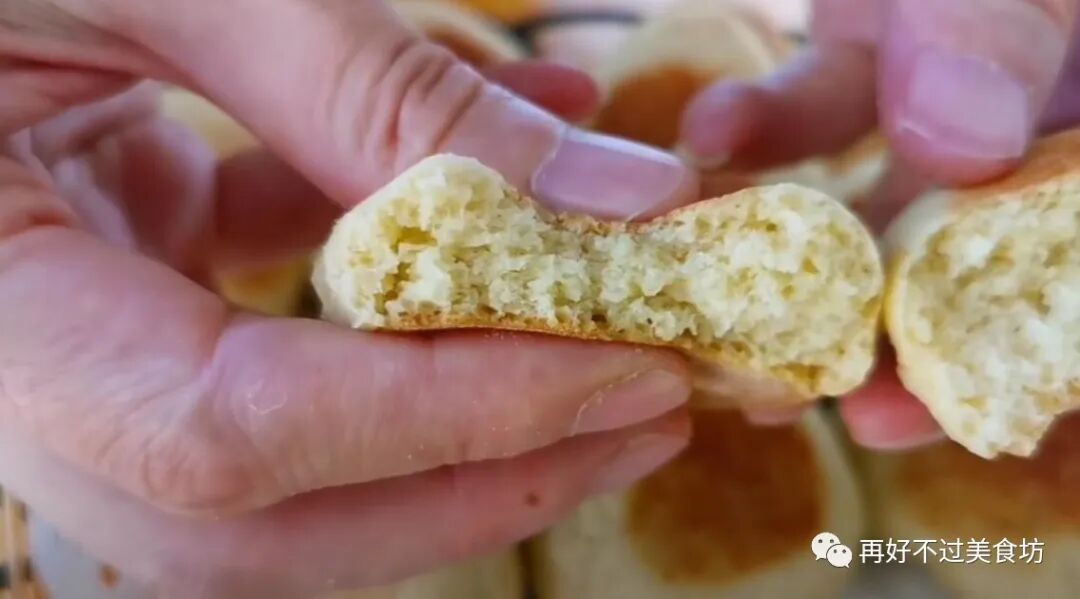 11、这样做出来的饼,外皮有一点酥脆,里面非常松软,有浓浓的鸡蛋燕麦香,它是发面的,也非常的好消化,给孩子当零食或当饭吃都可以,营养又健康。