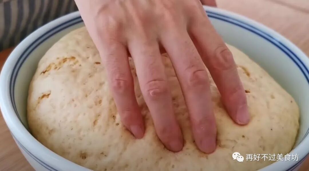 8、做好之后再盖上二次发酵至两倍大,发酵好之后,就变得胖乎乎的,拿起来是轻飘飘的。