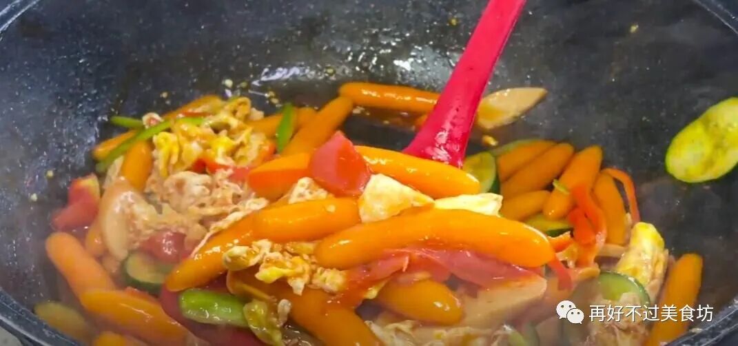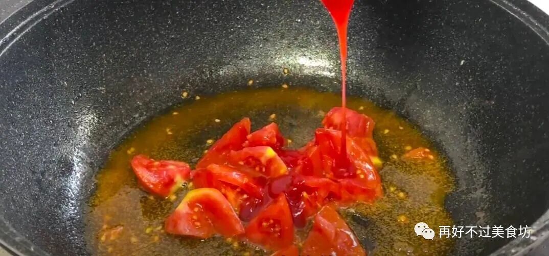 15、有条件的也可以加入一勺番茄酱,口感酸酸甜甜的,别有一番风味。