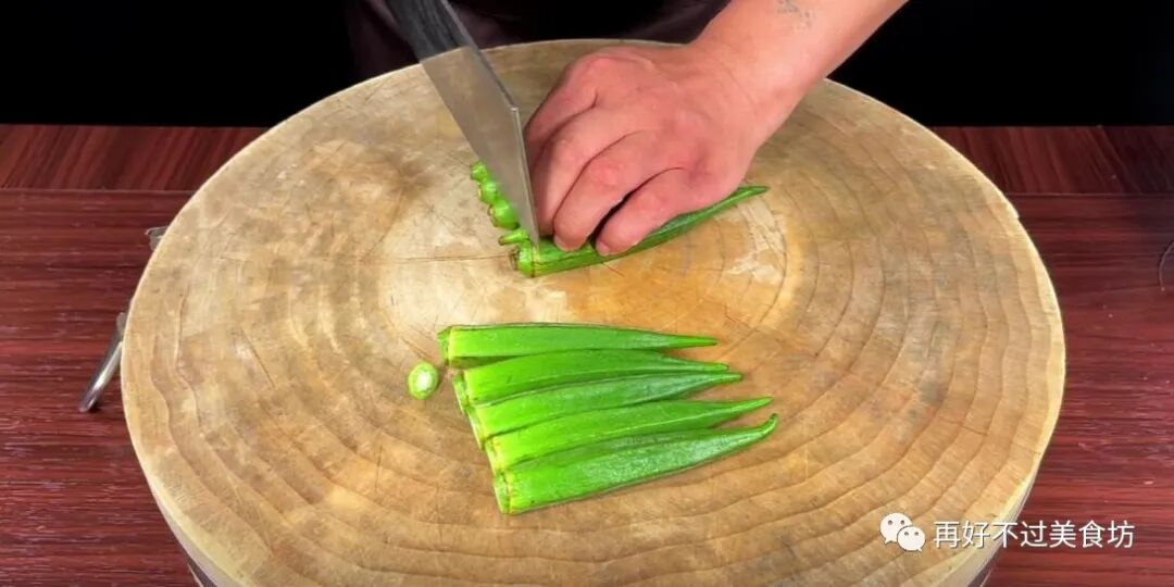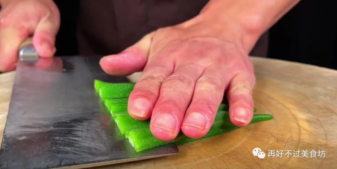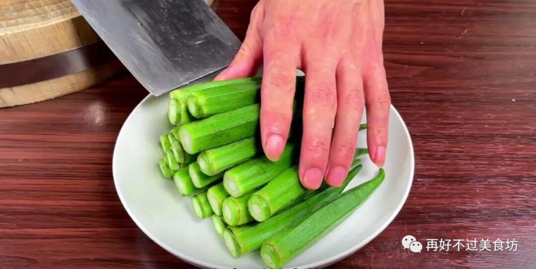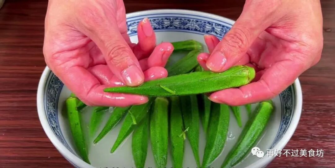 3、很多人吧,做白灼秋葵第一步就做错了,喜欢先切去头部,再从中间片开,再焯水,其实这样是错误的。