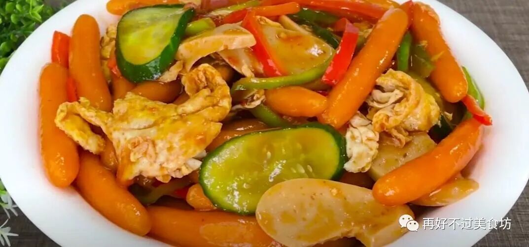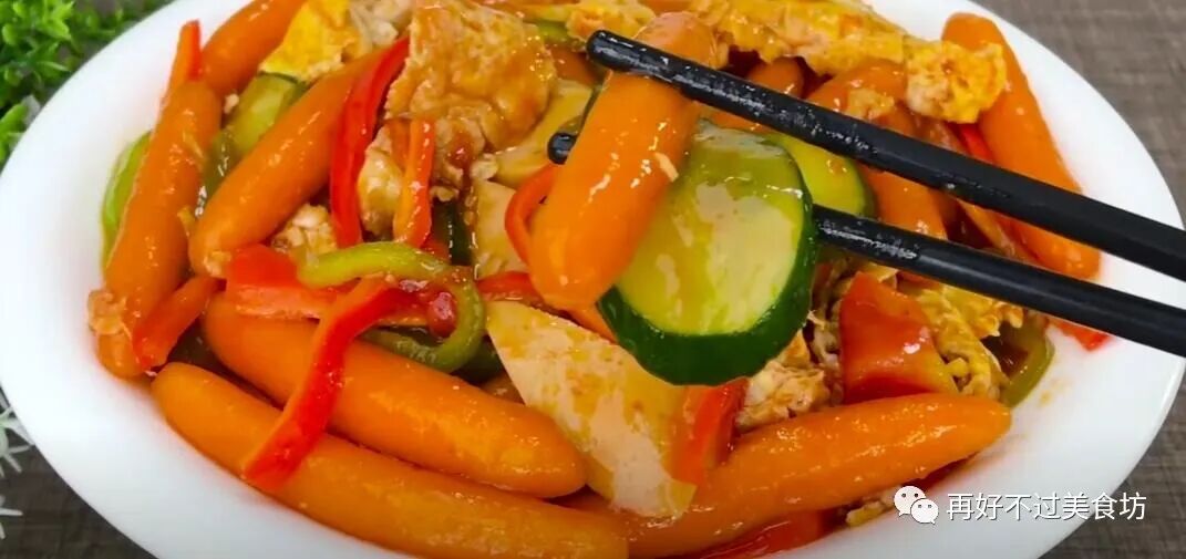 主要食材:胡萝卜、西红柿、火腿肠、黄瓜、青红辣椒