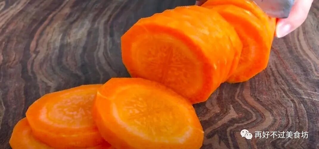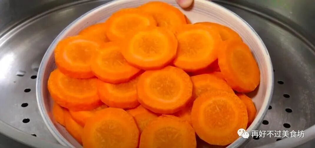 1、准备几根新鲜的胡萝卜,清洗干净后削去外皮,再切成厚厚的薄片,这样胡萝卜比较容易蒸熟。