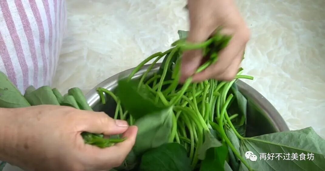 14、而炒出来的红薯叶茎,口感脆嫩,主食和小菜用的调味品很少,是一种非常营养健康的做法。