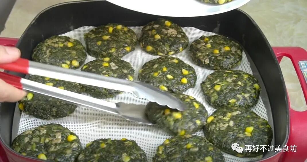 13、这样做的红薯叶饼,营养一点不会流失,里面没有放油,好吃还不油腻。