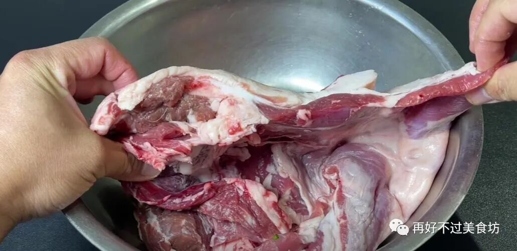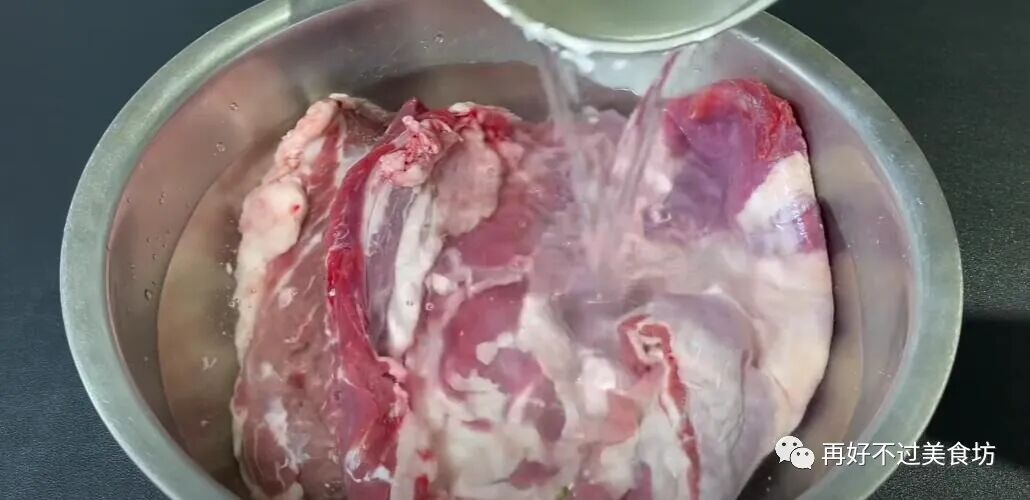 1、先把羊肉放入大盆中,加入清水浸泡半个小时,泡出血水和杂质,泡好以后再用清水清洗一下,把表面的脏东西全部洗掉。