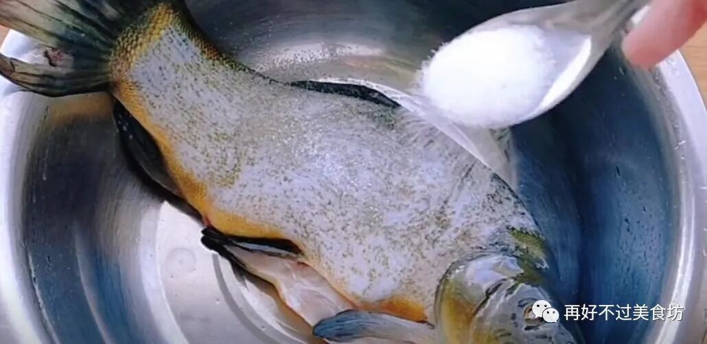 2、在洗干净的鱼身上撒上一层盐,然后均匀揉搓,这一步的目的,是去除鱼身上的粘液和腥味。此方法适用所有鱼类去腥。