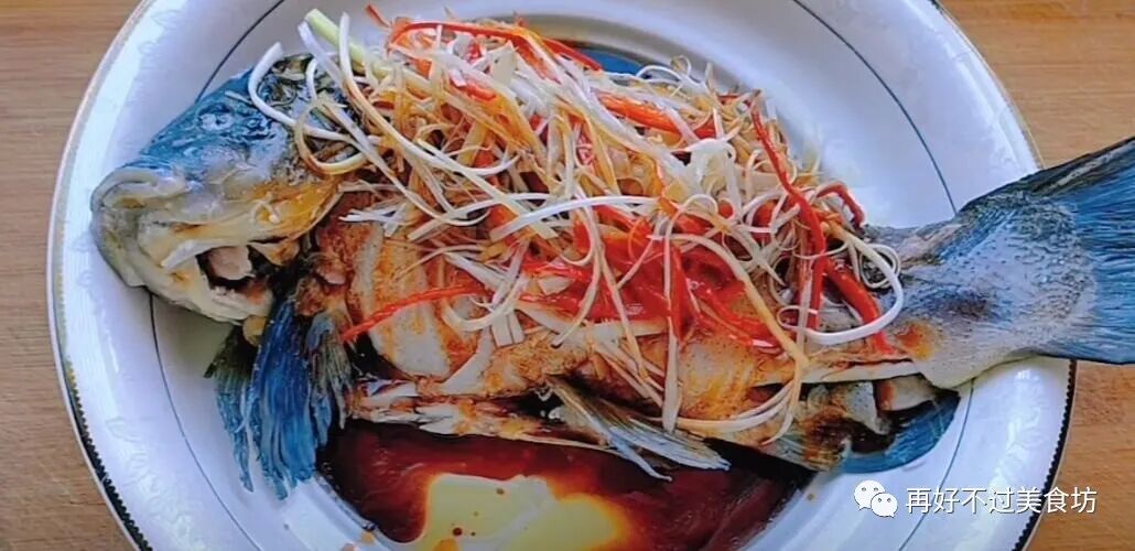 7、把刚才切的三丝放在鱼身上,淋入热油,适量的自制酱油,自制酱油要比蒸鱼豉油还要鲜香,看完你馋了吗。