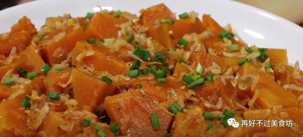 1、将南瓜去皮切块,处理好了搁一边备用,再准备一盘虾皮,两个蒜,一点姜,再加点葱白就可以了,葱白部分切末,来两个蒜,切末,姜切末。