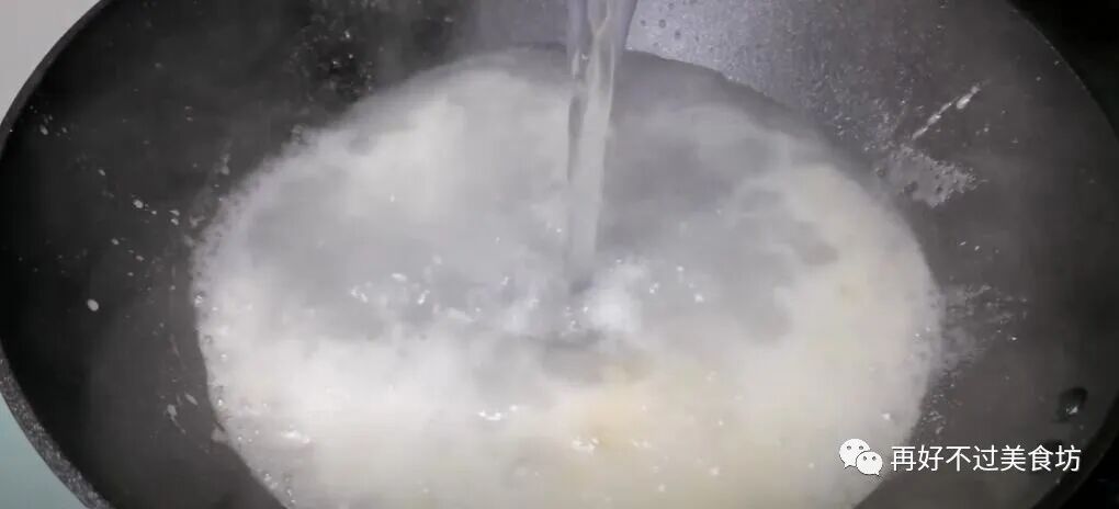 4、然后在锅内用适量热水煮开,煮开以后把表面的油脂,浮沫撇去,这样汤的味道更清爽,颜色也比较浓白。