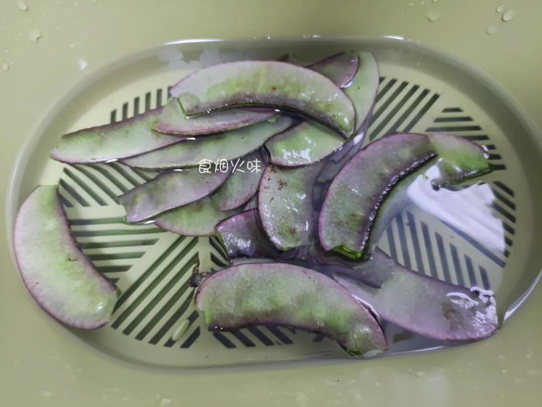 1.紫色扁豆,清洗的时候要记得用手将其表面搓洗干净。扁豆吃之前一定要煮熟,不熟吃了会影响健康;