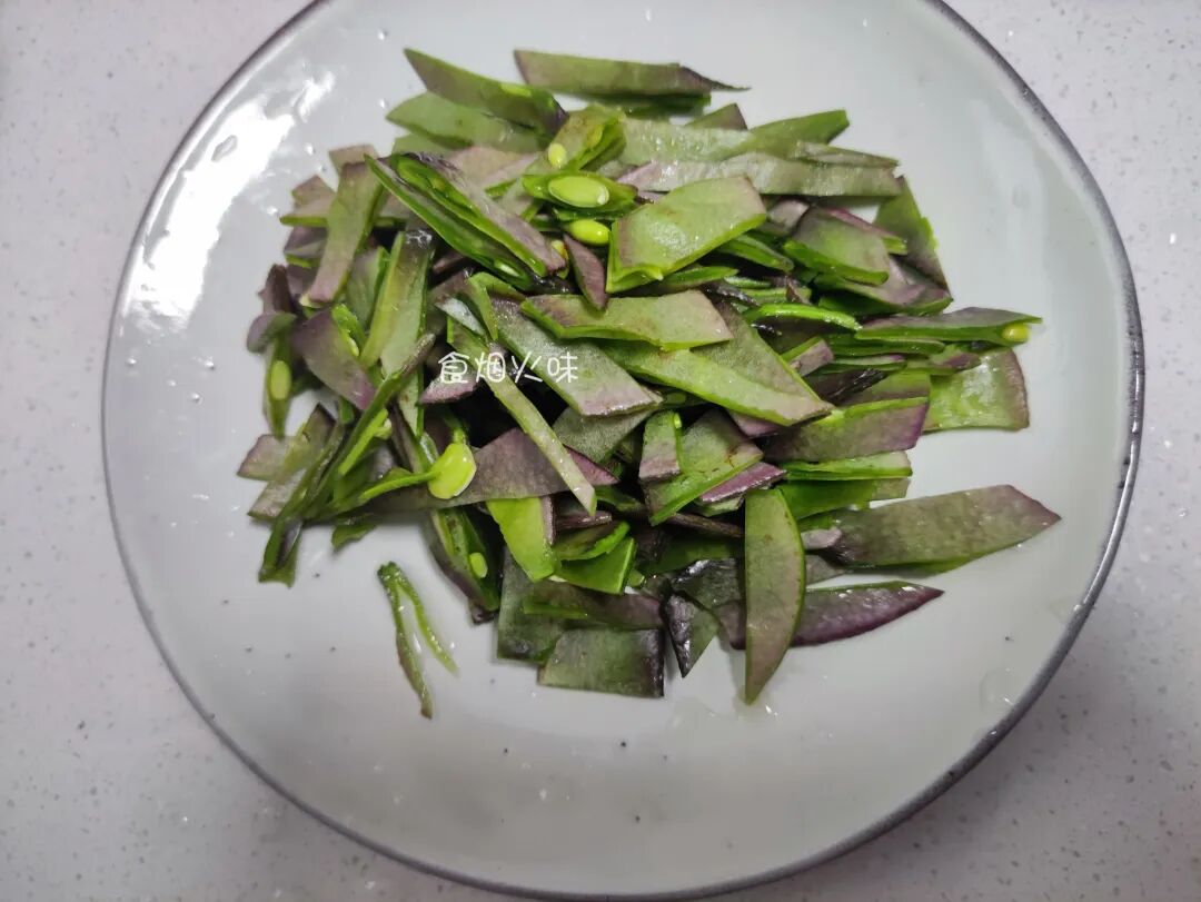 紫色的扁豆,在遇热之后,颜色会从紫色变成绿色。秋季正大量上市,市场上买一斤也才一块多,如果自己喜欢动手,家里也有地方种的,不防买种子回家自己种,生命力强,结果也多,一般一两株都结果,一家子吃都吃不完。