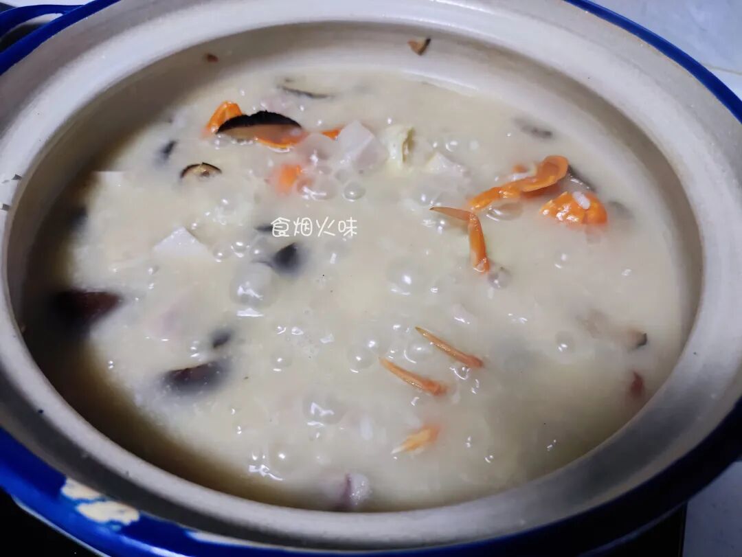 这道粥的营养很高,含有多种食材,多种营养,关键是味道特别浓郁,汤汁鲜甜,粥很香,秋季干燥,米饭经常吃也会腻,三不五时给家人熬这样的一道粥,营养高,好吸收,味道好。