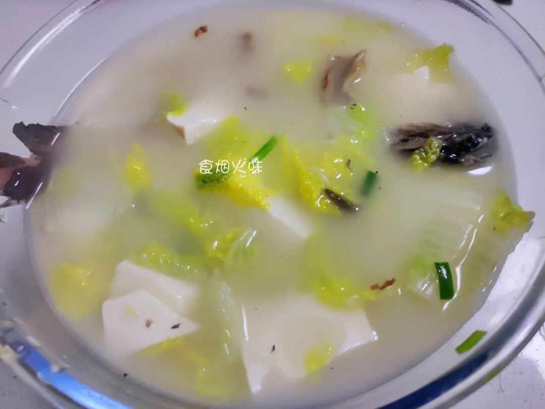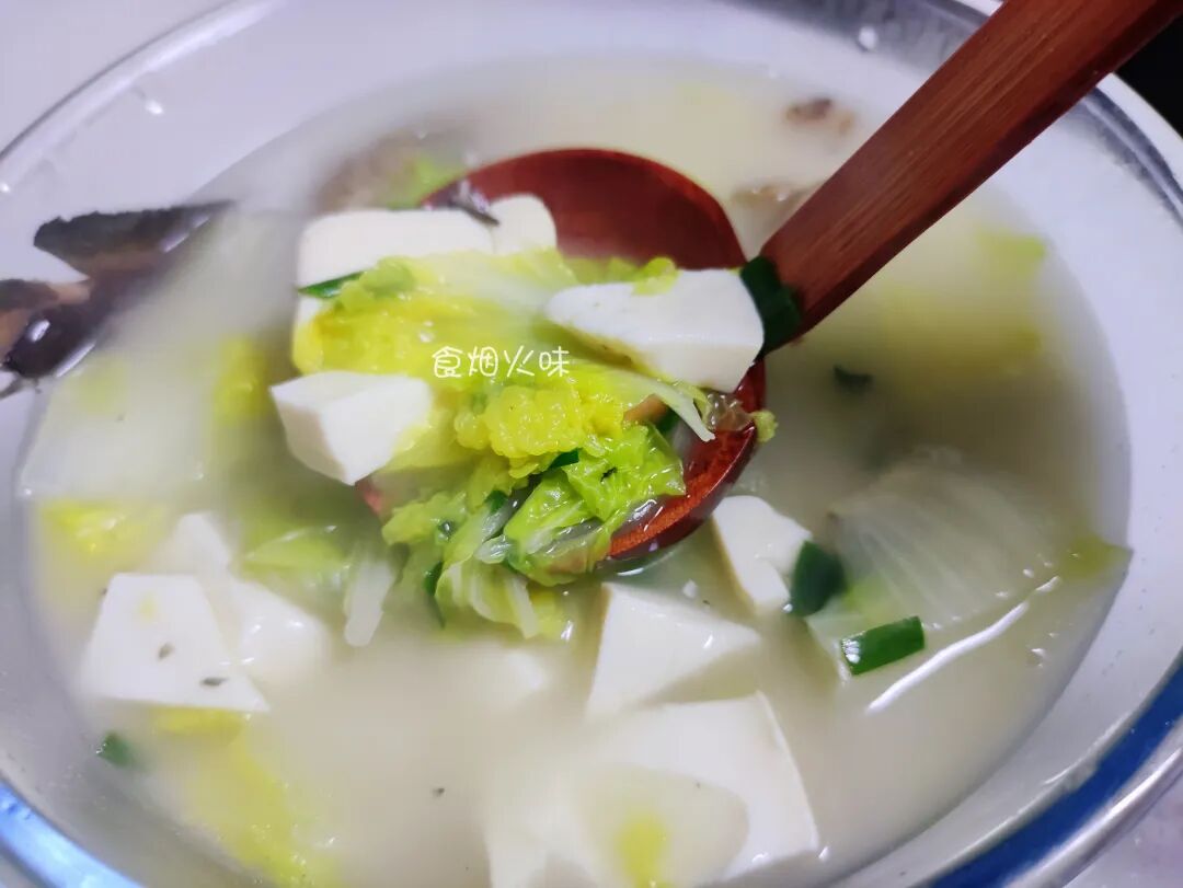 3.白菜跟豆腐一起煮汤,本身就很鲜甜,出锅可以不用再加鸡精了。