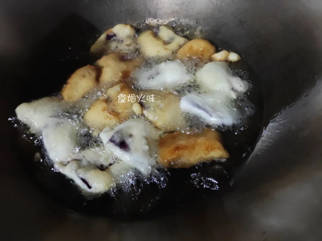 7.很快下锅后的地瓜片就会浮在表面上,而且表面慢慢膨大鼓起来。