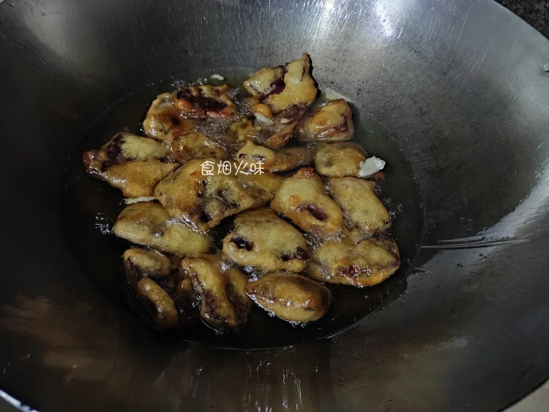 8.炸的时候很快就会变成焦黄状态,这个时候要记得用铲子将其翻个面,防止炸焦了。