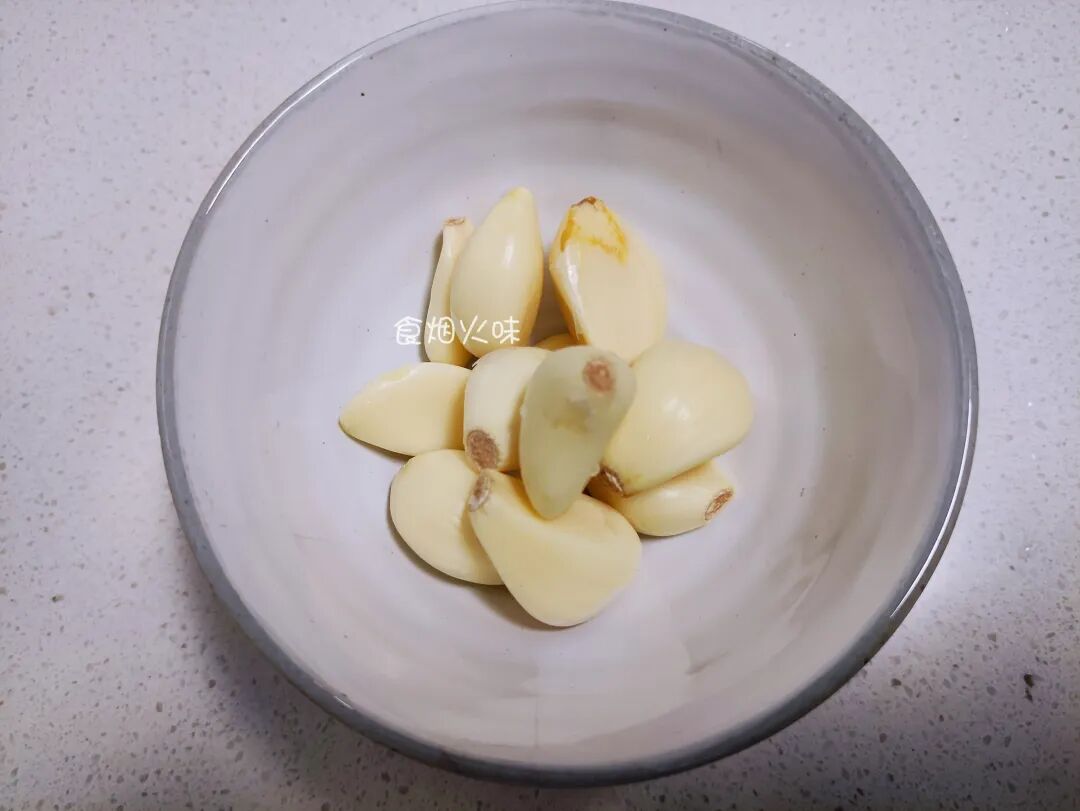 1.准备一个大蒜瓣,然后用手将蒜皮去掉。可以将蒜掰成一颗颗,然后放在水中浸泡30分钟左右,很快蒜的表皮就可以掰掉了。处理好后的蒜瓣放在清水中冲洗干净,洗净后放在碗中备用;