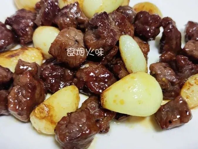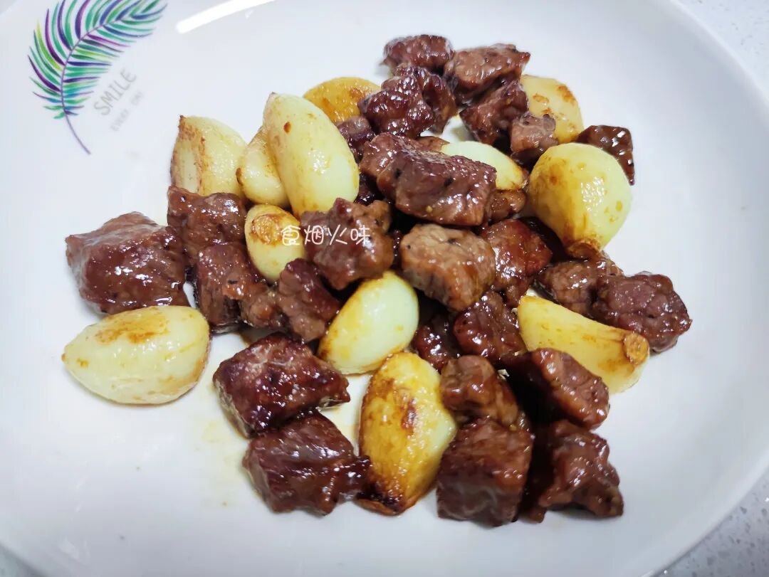 大蒜经过煎煮,出锅后软糯鲜美,不会再有辛辣味,绵绵的比新鲜的好吃。而牛肉丁口感嫩滑鲜美,特别鲜嫩,融合着大蒜的鲜味,好吃极了。吃饭的时候,有这道菜,饭都不愁吃不完了。