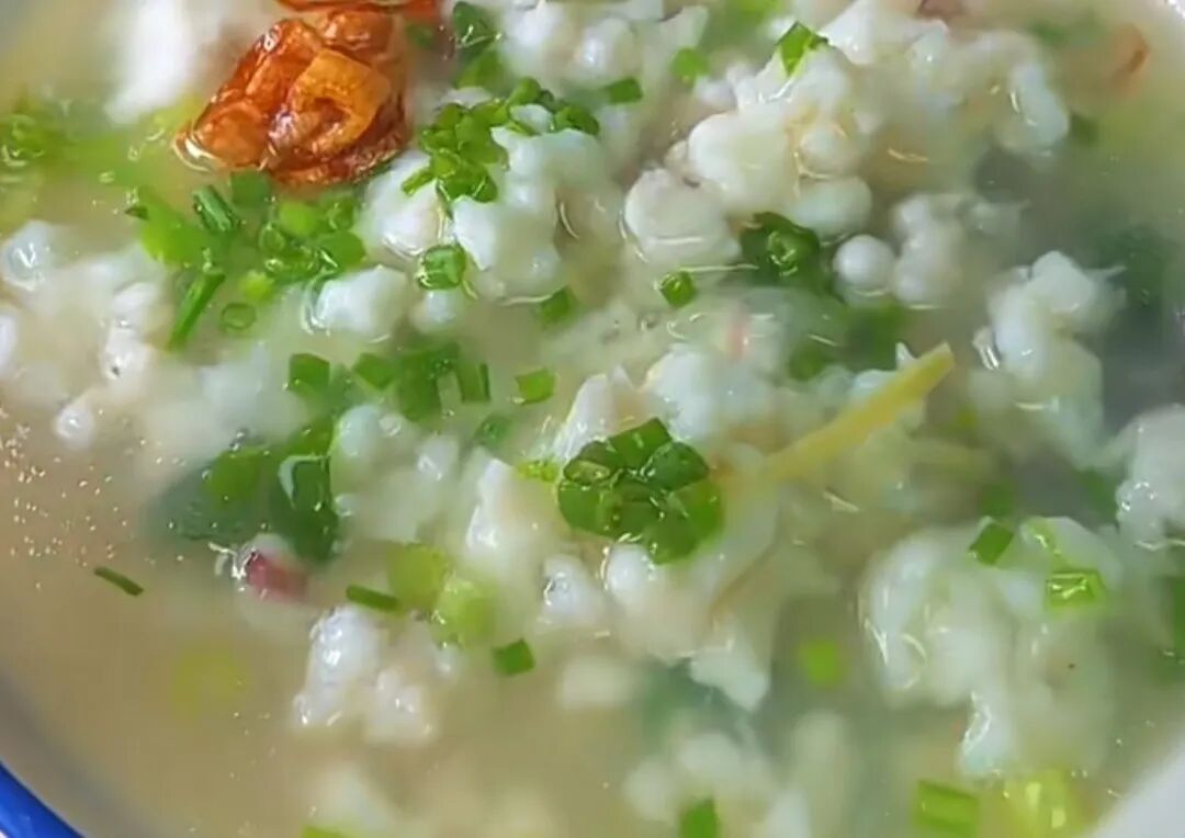 5.用勺子将它们轻轻推开,锅中的水再次开后,加入食盐,胡椒粉,还有葱花点缀,适量的葱头油增加香味。味道如果可以的话,就关火出锅。