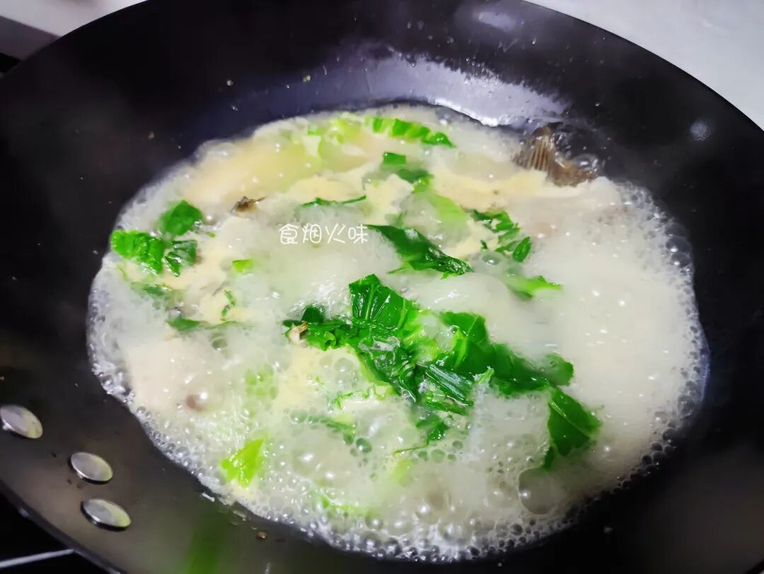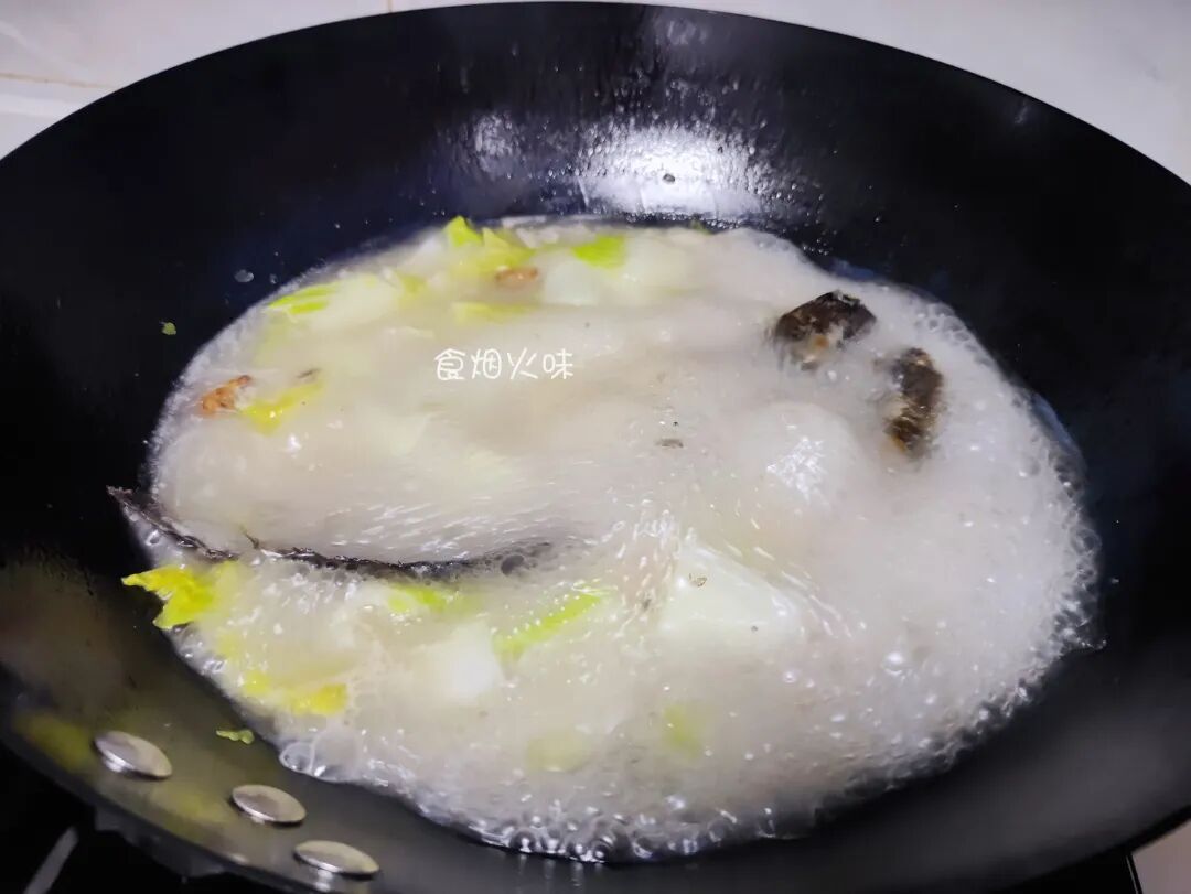 3.锅中的鱼要煎到两面焦黄状态,随后倒入适量的冷水,盖上盖子放着中大火煮开。鱼汤要多滚几次,煮出来的汤才会呈奶白色,很是鲜美。煮鱼的时候,将准备好的酸笋洗净,锅中的水开后,将酸笋倒入里面滚几下;