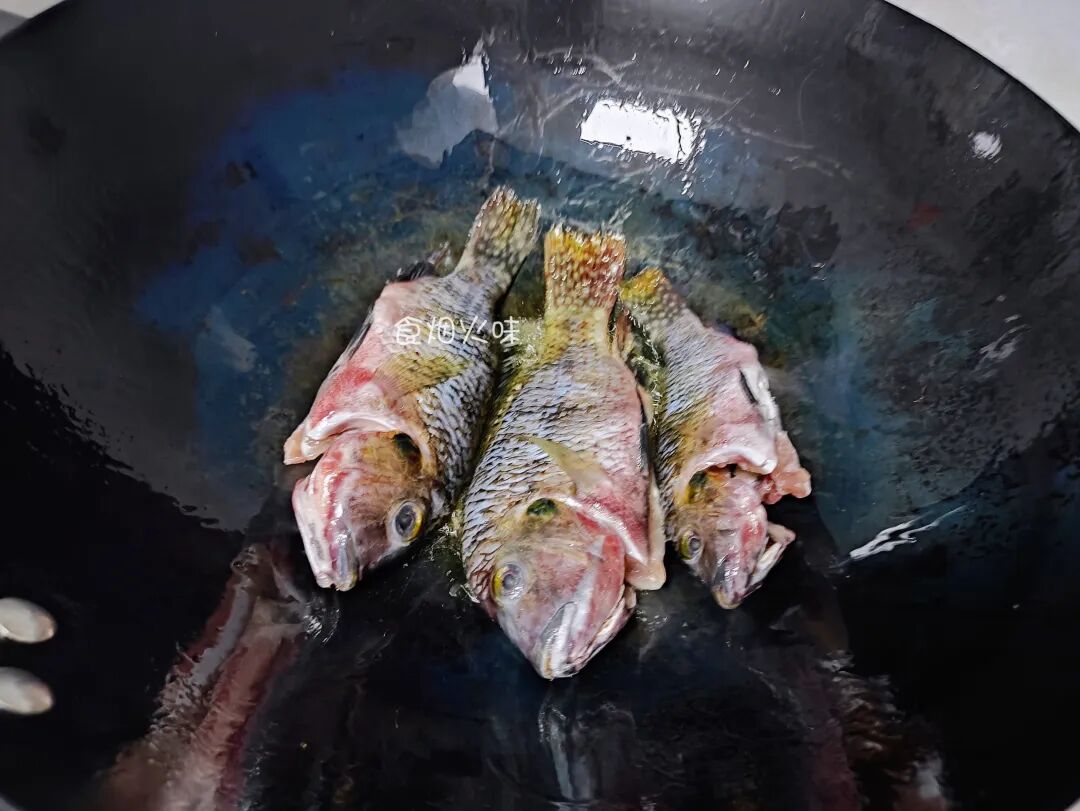 2.这些小鱼还是邻居家送来的,鱼相对小只,我们一般会将它熬成汤,滋补营养,特鲜美。准备好的小鱼处理干净,特别是里面的黑色膜也要清洗干净,这样煮出来不腥不苦,洗净沥干表面水分。准备一个干净的锅,锅中的水分干后,倒入适量的油,生姜洗净后切片放入炒香。将小鱼放入锅中煎,煎鱼的时候不用翻动,转动锅身;