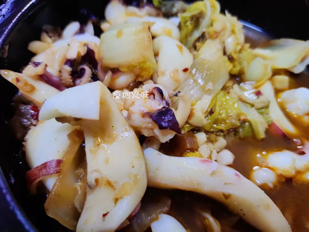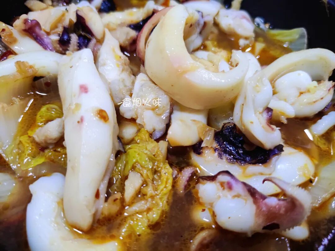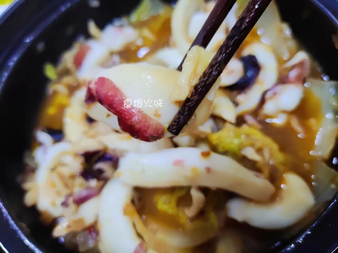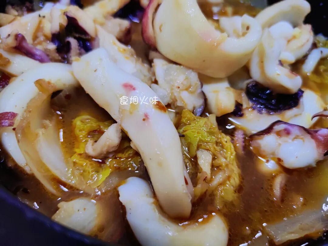 3.白菜要煮久点,越煮越好吃。墨鱼容易熟,要最后下锅,煮1-2分钟左右就可以了,如果煮的时间过长,出锅后会老硬。