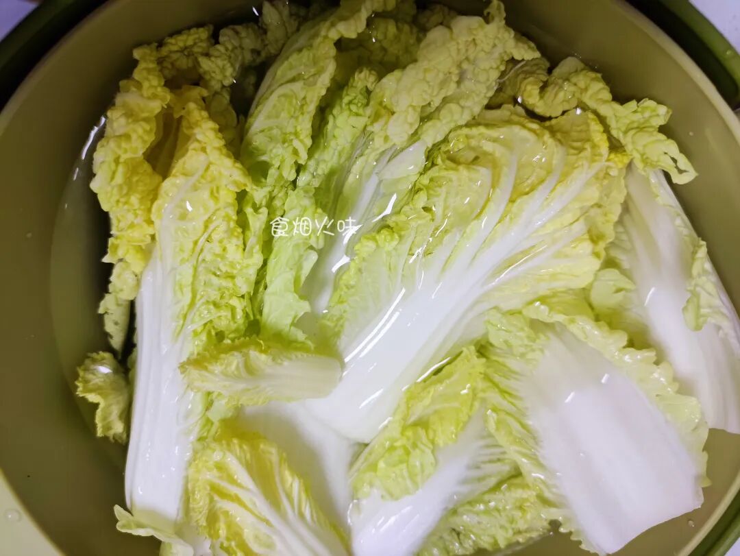1.白菜根部清洗的时候要用手将其搓洗干净,这个地方摸起来会有点滑滑,要多洗几遍。洗净后直接切块放着;