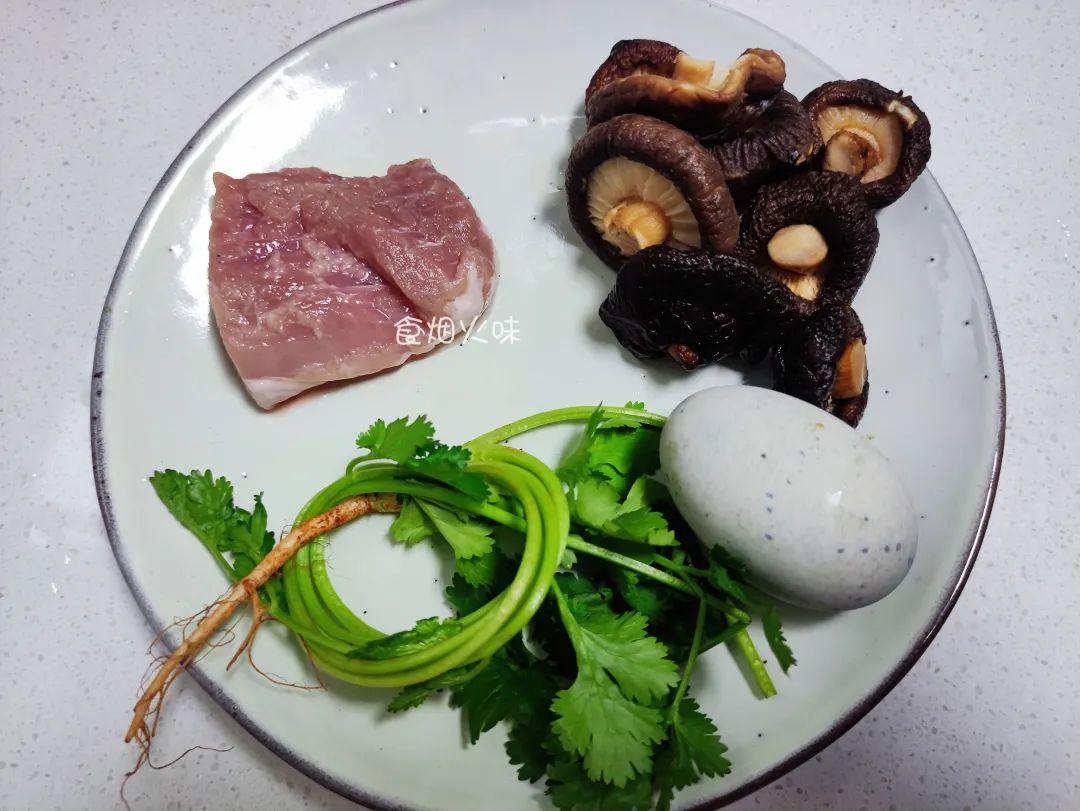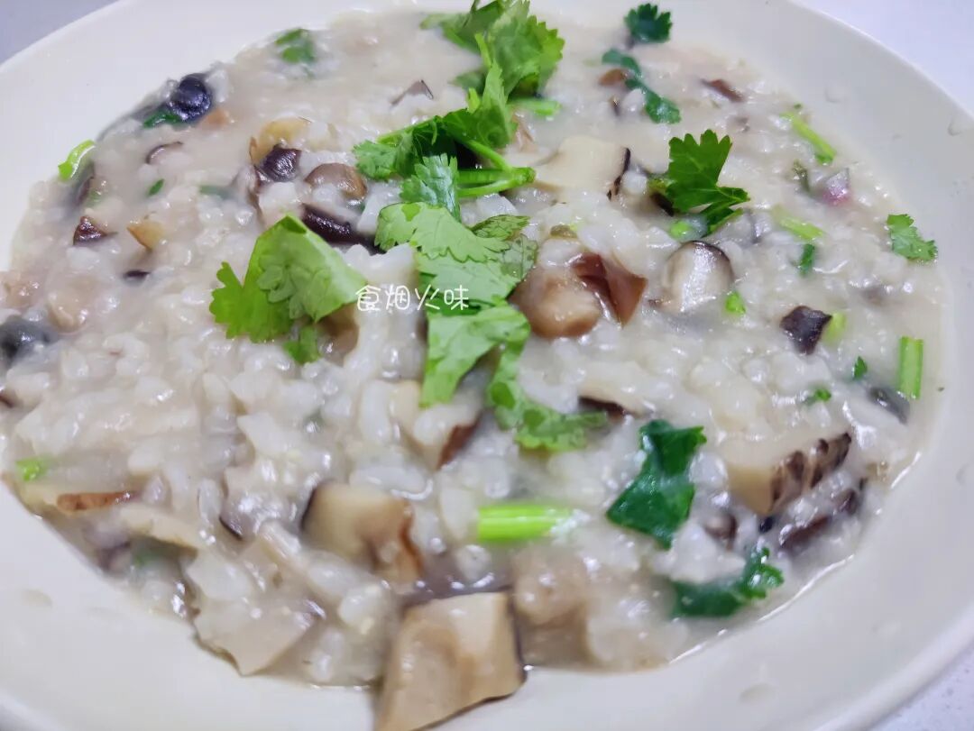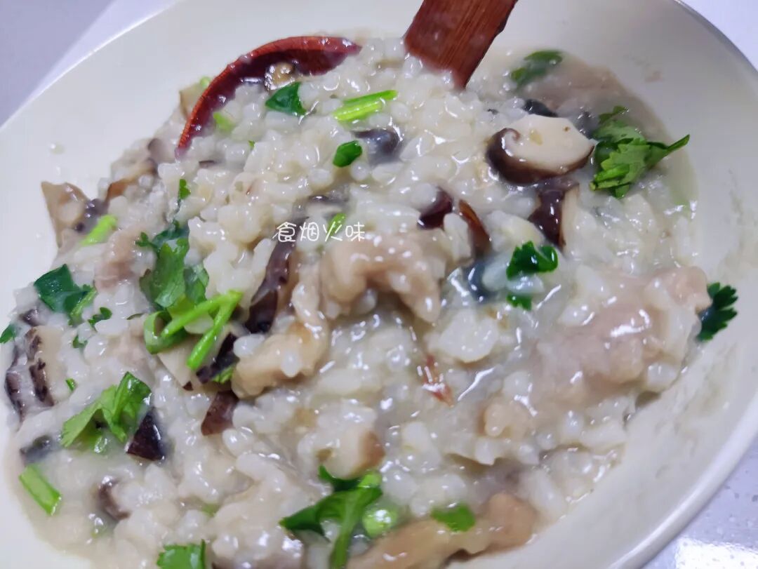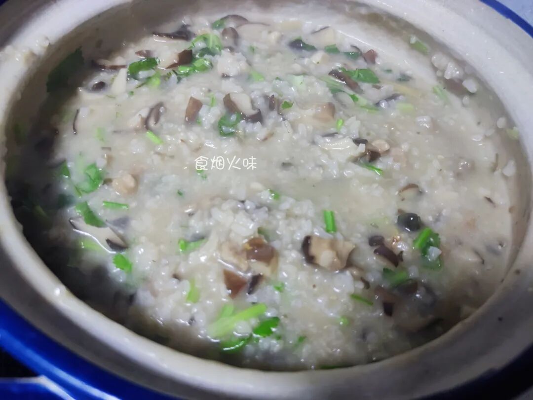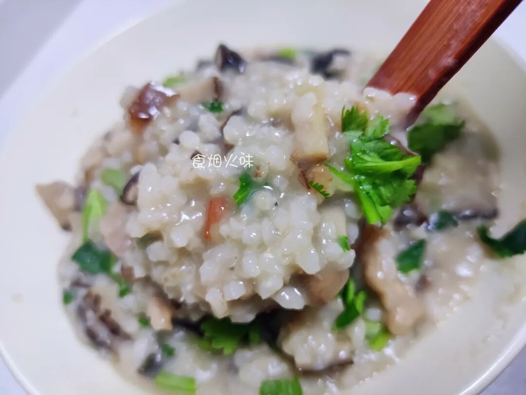 大米,瘦肉,香菇,皮蛋,香菜,葱头,生姜,淀粉,酱油,食盐,鸡精,食用油