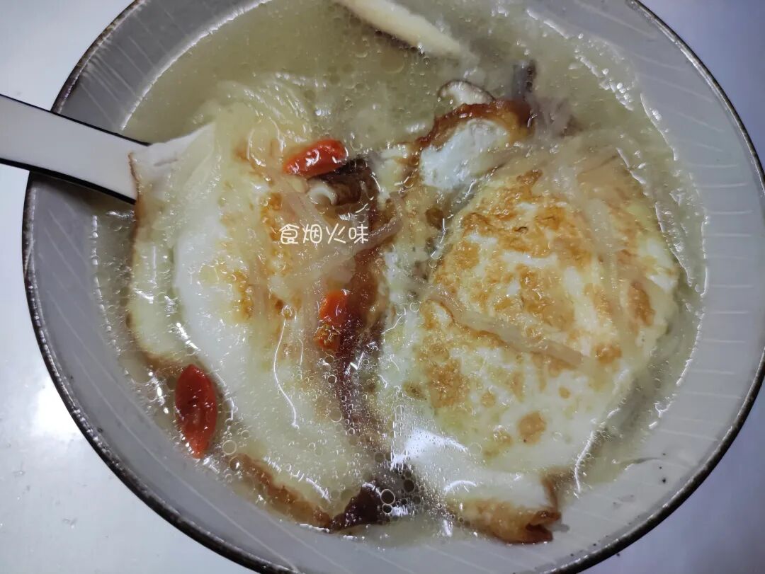 7.汤在煮的过程中,将准备好的枸杞放入水中洗干净。锅中的水开了,将洗净的枸杞倒入锅内,加入适量的食盐,鸡精,再煮1分钟左右后试一下味道,可以的话就可以关火出锅了。