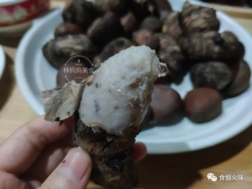 1.芋头用清水洗净,最好多洗几遍,去掉其表面的尘土。板栗也用水洗净,放入锅中,在锅中加入适量的水。板栗下锅前用刀在其背面划上一个十字形,有利于煮熟后剥皮(由于我着急着吃,忘记这一步了,煮熟不好剥皮)。在锅中加入两勺盐巴,这样煮出来的芋芋跟板栗更有味道。