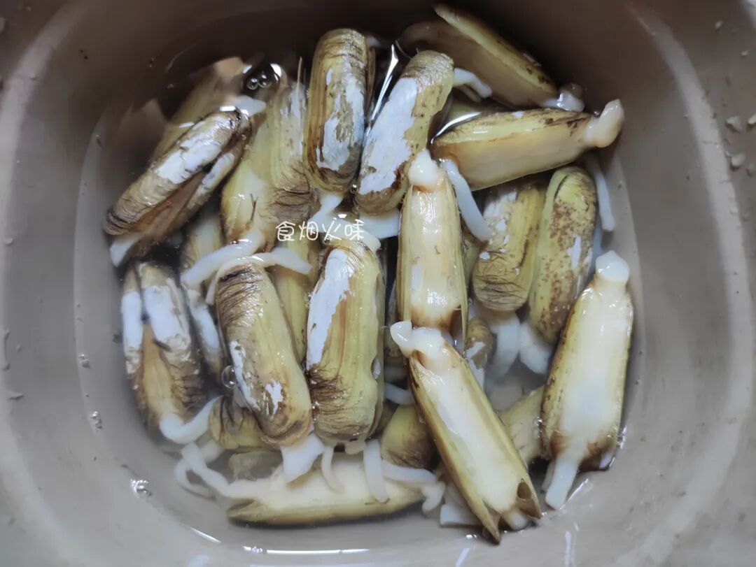 2.买回来的蛏用食盐水浸泡,清洗干净放在一旁;