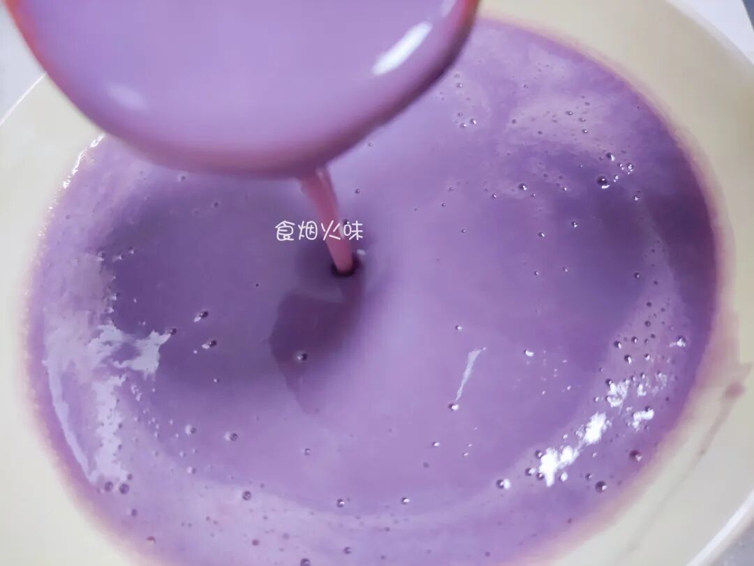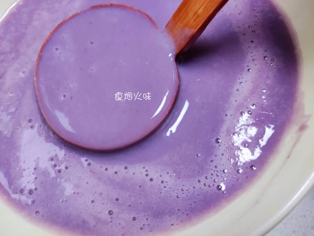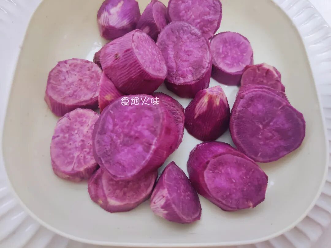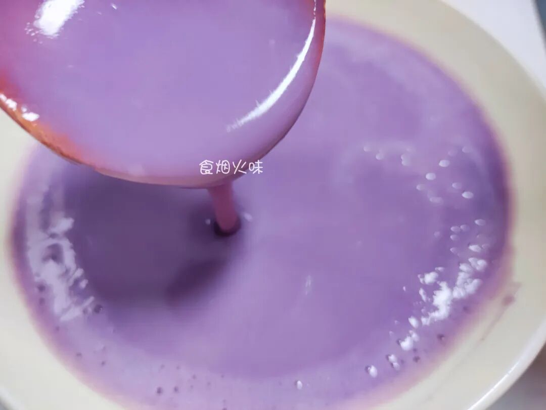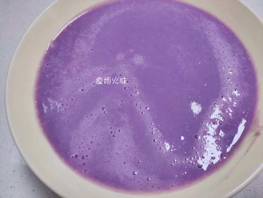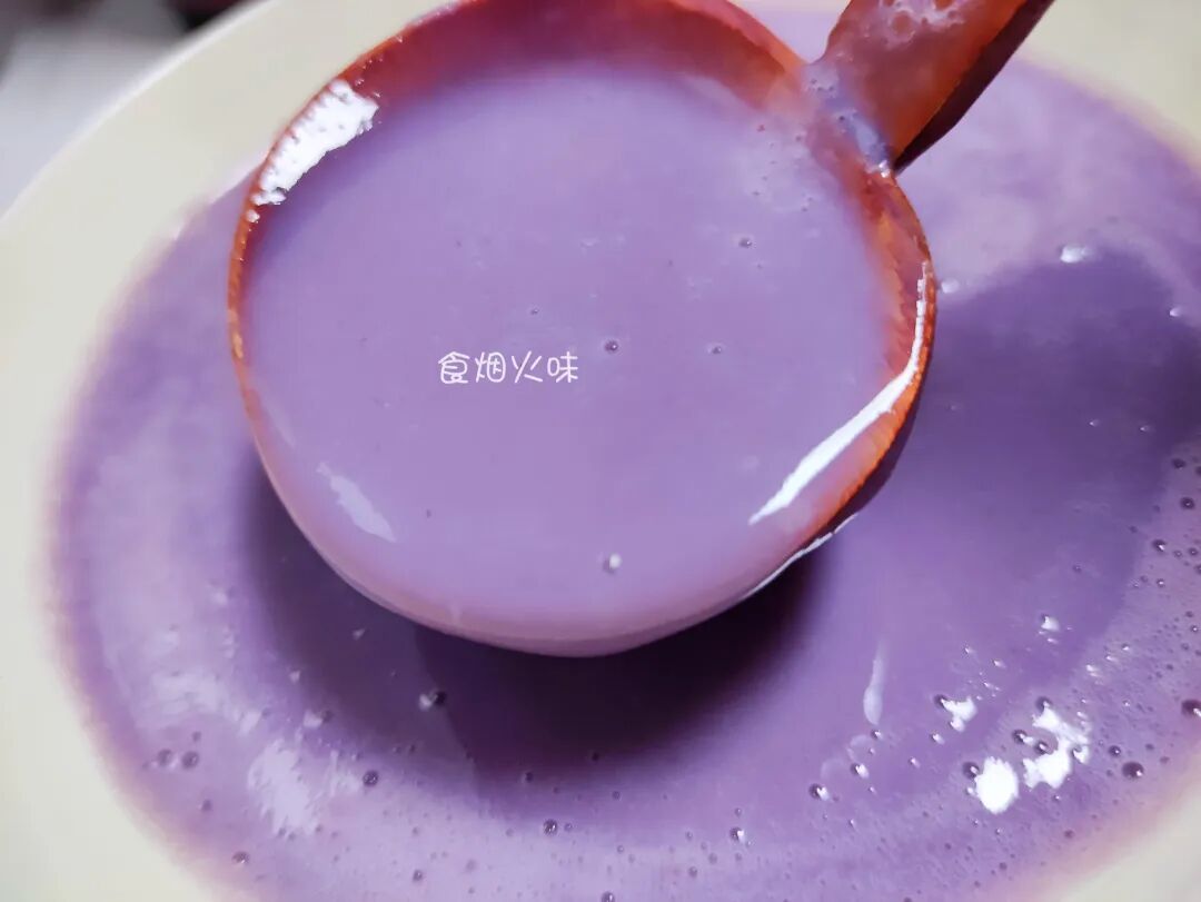4.紫薯是紫色的,在煮的时候形成漂亮紫色的汤,非常好看。一早起来,看着这样的一份紫色汤,脑袋中迸发的松松喜悦感;