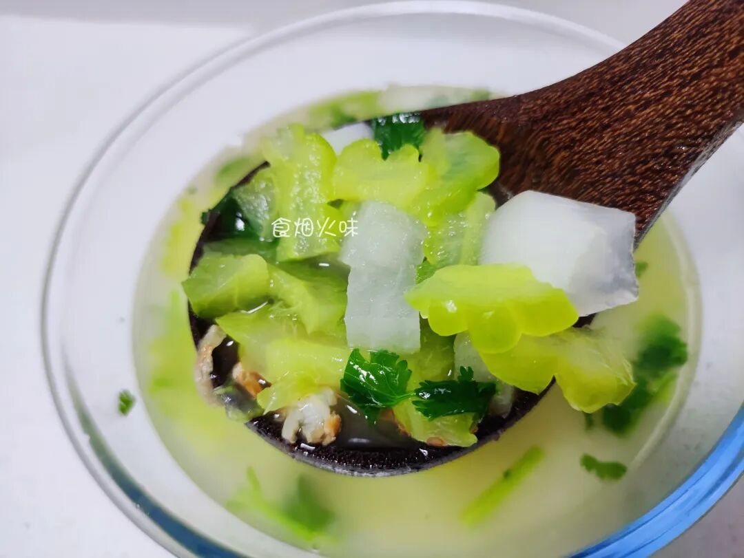 鲜甜爽口的苦瓜白萝卜汤就这样完成,有白萝卜的鲜甜,苦瓜这样做也不会苦。而且这样做法,汤汁清甜爽口,一点也不会油腻,而且营养不比肉汤少。深秋干燥,这汤很适合,滋补益气,滋阴降燥,还清肺热。热乎乎的汤,暖胃更是暖心。