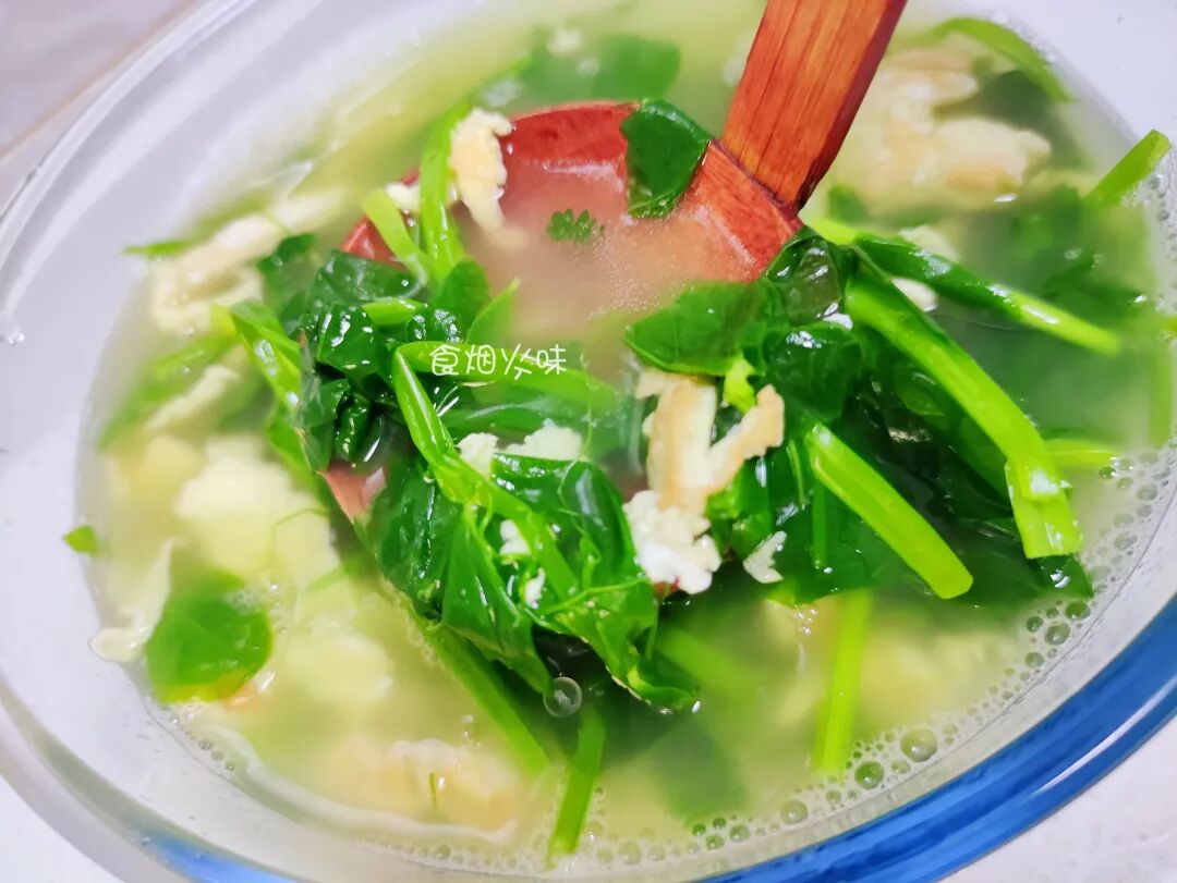 一份快手的蔬菜汤就这样完成,豌豆尖的脆嫩,而且颜色很好看,另外鸡蛋的口感嫩滑,舀起来一勺汤放在嘴巴里,淡淡的清香味,香气扑鼻,而且汤很鲜,感觉味蕾一下子就被打开了。