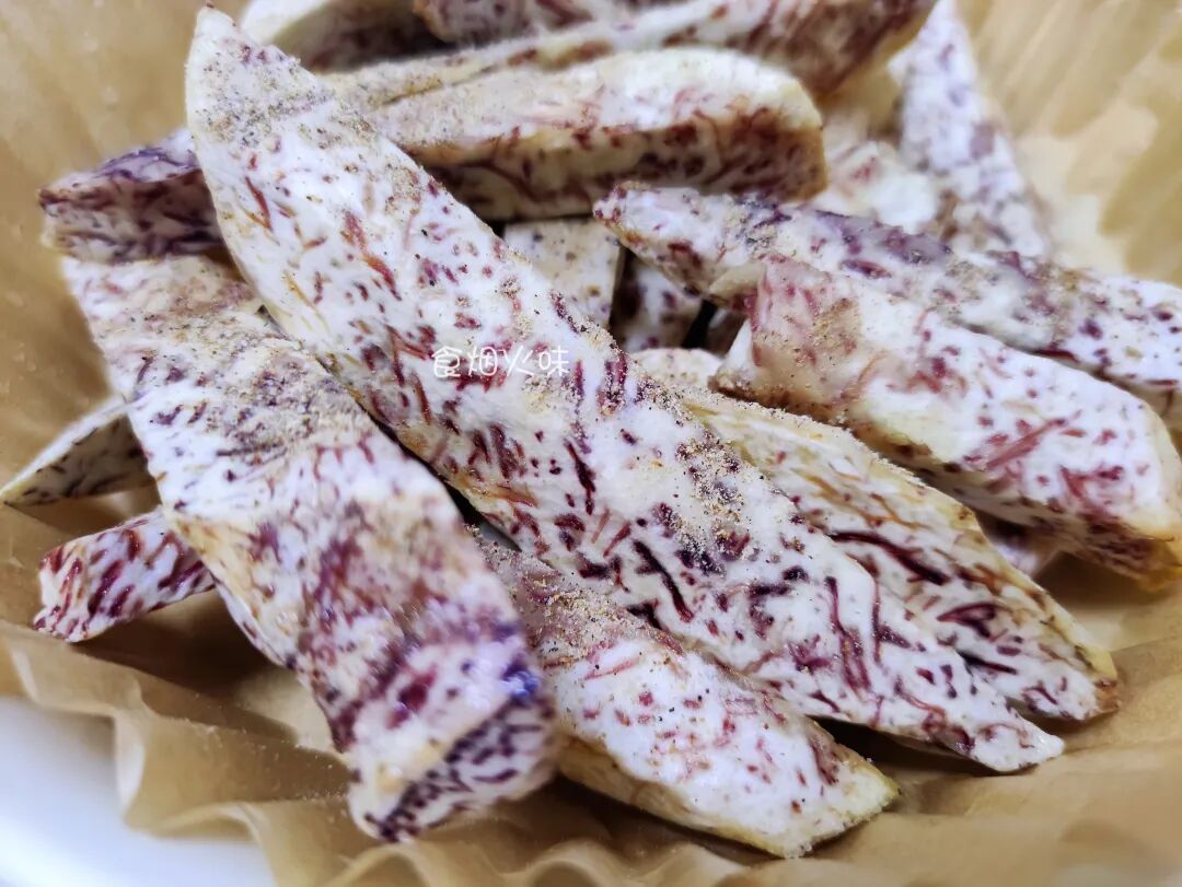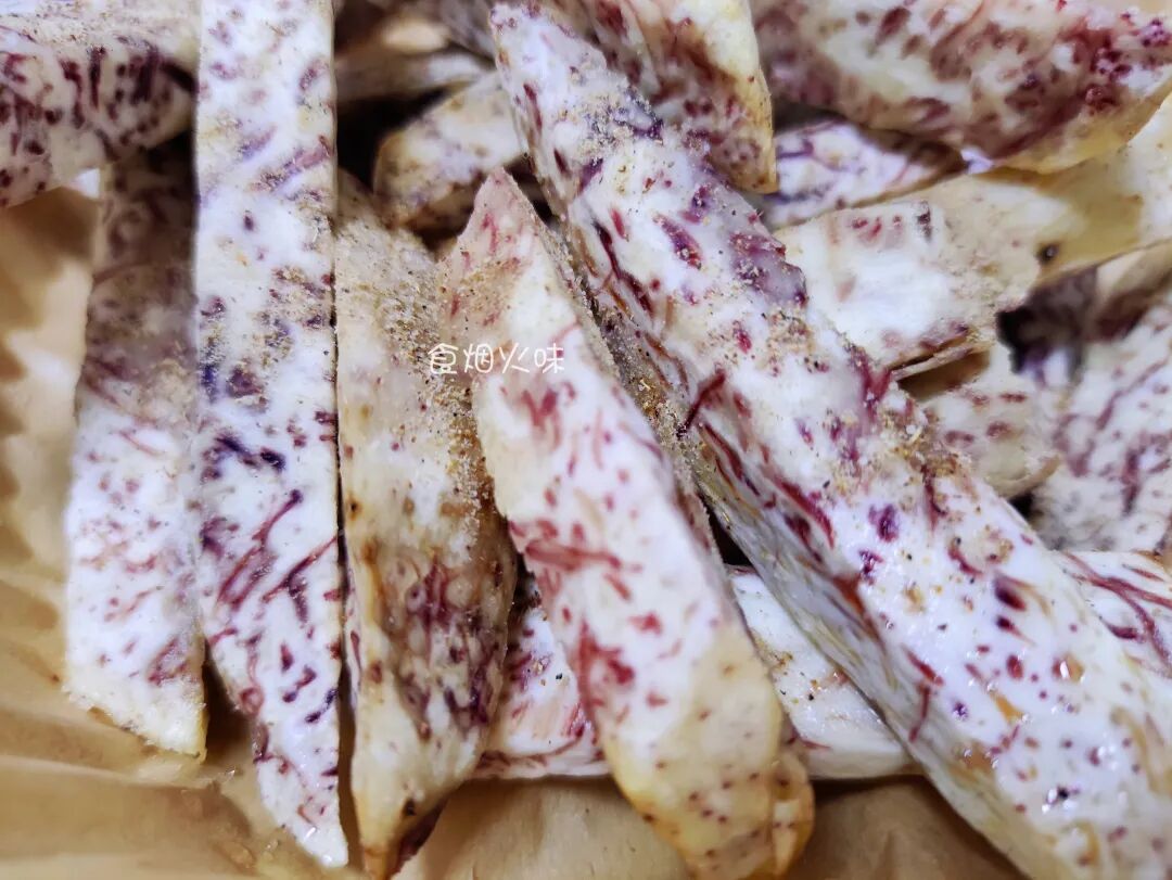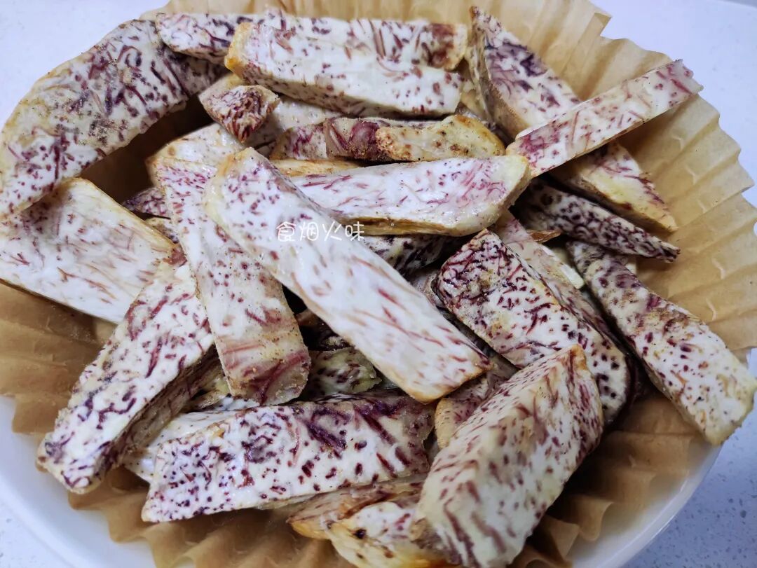 这样做出来的芋头,超级香。吃的时候,表皮是酥脆,而里面则是粉粉糯糯,很鲜甜。而且芋头不会油腻,很清爽,看剧,泡茶聊天的小零食。