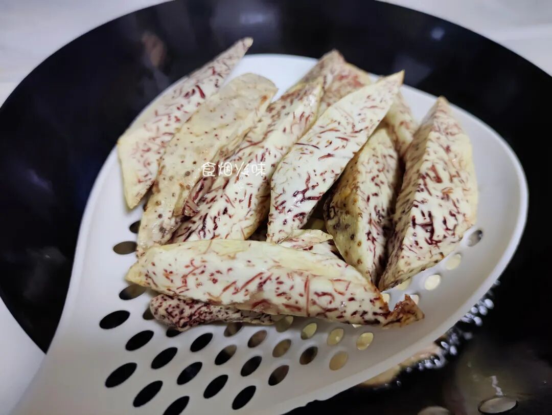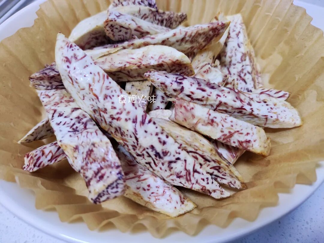 1.芋头表面有刺激皮肤的黏液,处理的时候要戴上一个手套,然后直接用削皮刀去掉表皮,去皮后要放着沥干水分,防止在炸的过程中会溅油;
