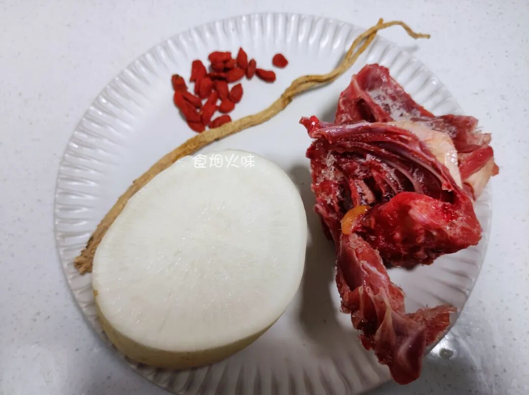 6.鸭肉炒香后盛出放在炖锅中,加入切好的枸杞跟党参,适量的开水,然后盖上盖子炖煮1.5-2小时。等锅中的水再次开后,将切好的白萝卜倒入里面,盖上盖子煮。等待锅中的汤炖好后,加入适量的食盐调味,搅拌均匀后即可关火出锅了。