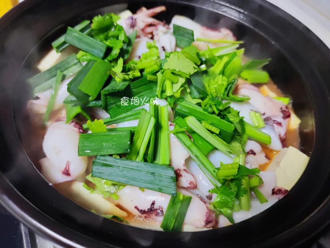 今天我们不用白灼了,换这种做法,鲜美爽口,下面的食材吸收了鱿鱼的鲜味,口感也好很多。深秋,天气冷,这样一锅炖菜不要错过了。